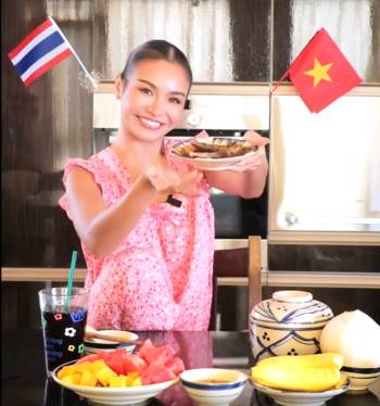 Á hậu Miss Cosmo diện đồ bộ, làm vlog ăn cơm với khô cá, dưa hấu, chan nước dừa