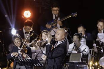 Nhạc trưởng Đồng Quang Vinh cùng dàn nhạc “Sức sống mới” trình diễn trên Vịnh Hạ Long