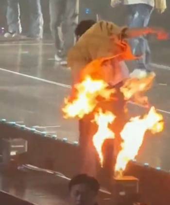 Jaehyuk bị lửa bén vào người trên sân khấu Thái Lan