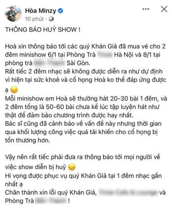Hòa Minzy liên tiếp 'tụt dốc' sức khỏe đến mức phải hủy show