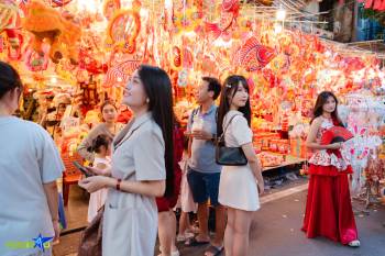 'Sống ảo' với trăng vàng, thỏ ngọc khổng lồ trên phố Hàng Mã