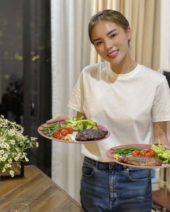 Kỳ Duyên trổ tài chế biến steak 'ngoài chín trong sống'