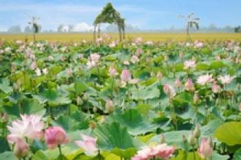 'Chill' giữa ao sen nở bung ở Đồng Tháp