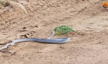 Rắn boomslang tiêm nọc độc cho tắc kè hoa
