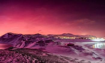 Bầu trời Nam Cực chuyển màu hồng rực