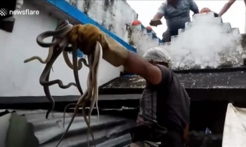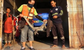 Kỳ đà dài 1,5 m trốn dưới gầm xe bán tải