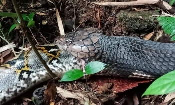 Hổ mang chúa gồng mình nuốt chửng trăn sau trận tử chiến