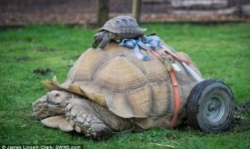 Rùa bị liệt vì giao phối quá độ được lắp bánh xe