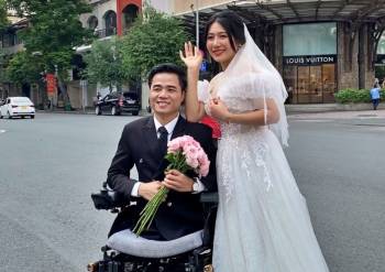 Chàng trai không chân tung ảnh cưới, khoe cô dâu xinh như nàng thơ