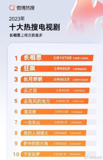 Top 10 phim Trung lên hot search nhiều nhất 2023: Trường Tương Tư 'vượt mặt' siêu phẩm quốc dân