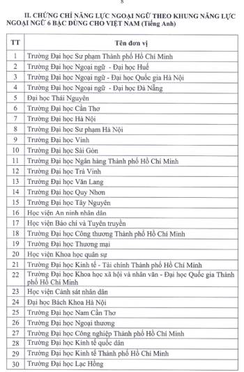 Công bố 30 trường đại học được tổ chức thi, cấp chứng chỉ tiếng Anh