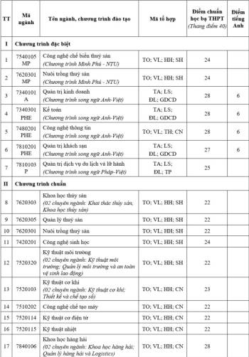 Điểm chuẩn học bạ Đại học Nha Trang cao nhất 30/40