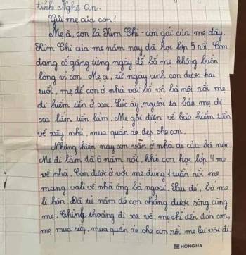 Bức thư gửi mẹ của cô bé lớp 5 khiến người đọc rơi nước mắt