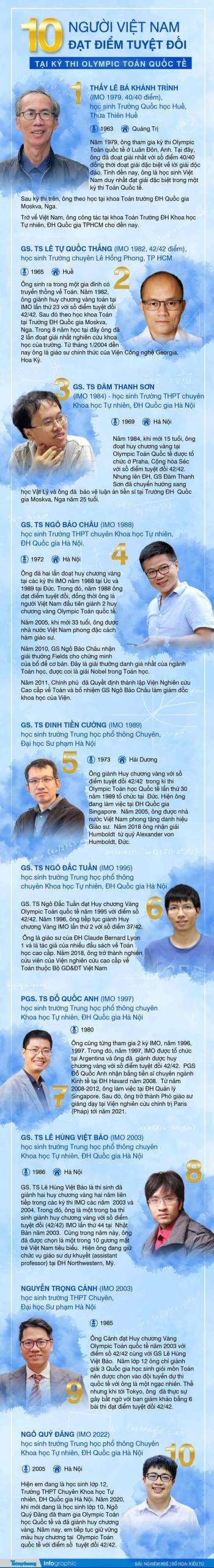 10 người Việt Nam đạt điểm tuyệt đối tại kỳ thi Olympic Toán Quốc tế