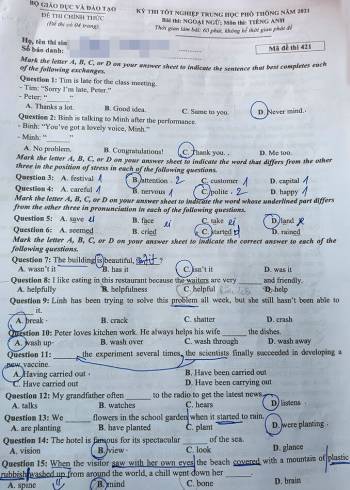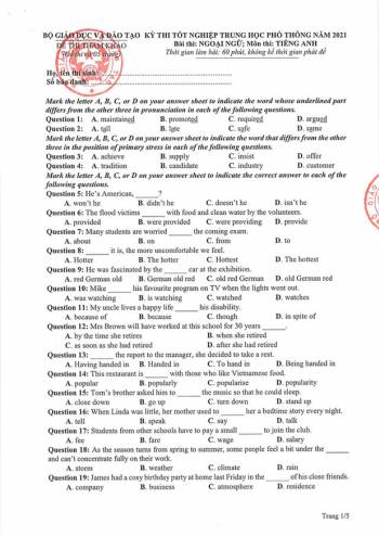 Đề Tiếng Anh thi tốt nghiệp THPT