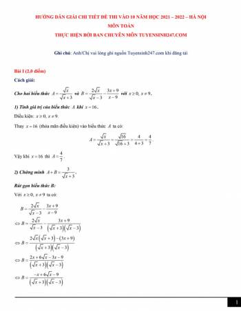 Đáp án đề thi vào lớp 10 môn Toán 2021 Hà Nội