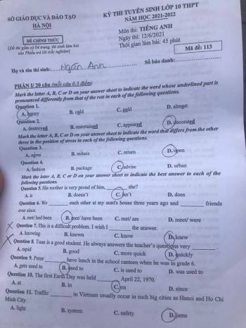 Đề thi tuyển sinh vào lớp 10 môn Tiếng Anh 2021 Hà Nội: Siêu dễ
