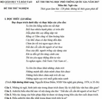 Đề thi thử nghiệm THPT quốc gia 2017 môn Ngữ văn