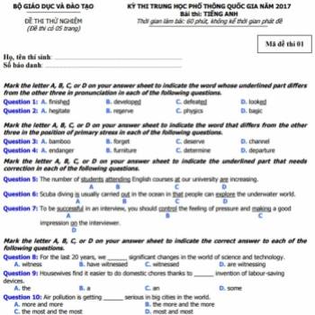 Đề thi thử nghiệm THPT quốc gia 2017 môn tiếng Anh