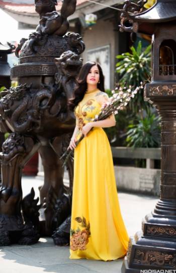 Hoa khôi sinh viên Cần Thơ diện áo dài nền nã đi lễ chùa Ông