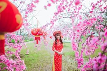 Thiếu nữ mộng mơ giữa vườn đào Nhật Tân