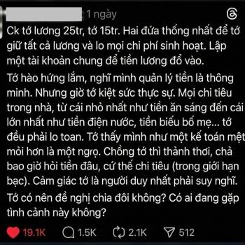 Vợ "sợ hãi" vì chồng đưa hết lương cho giữ: Cầm 40 triệu/tháng mà suy nghĩ đến kiệt sức