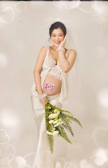 Diễn viên Thanh Trúc khoe ảnh cô dâu bầu xinh đẹp, nói 1 câu về chú rể cận ngày sinh
