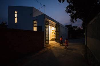 Ngôi nhà tối giản có mặt tiền dùng gạch đảo ngược
