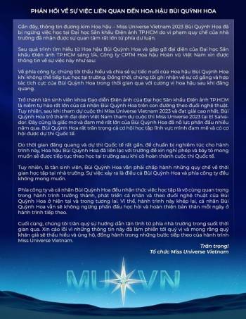 Bùi Quỳnh Hoa bị buộc thôi học, BTC Miss Universe Vietnam nói gì?