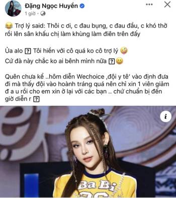 Huyền Baby kể sự cố khôi hài ở WeChoice: Đột ngột đau sát giờ diễn, chỉ dám xin 1 viên thuốc vì lý do này?
