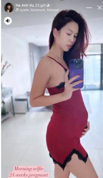 Hà Anh lần đầu khoe cận bụng bầu ở tháng thứ 6, tiết lộ hành động của con gái với em bé