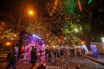 Người dân Hà Nội ngắm tuyết rơi đón Giáng sinh trên phố đi bộ