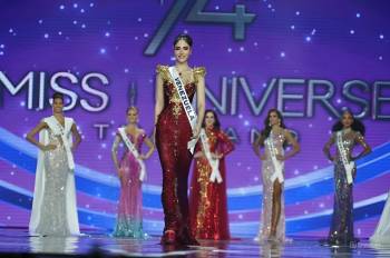 Nữ hoàng sắc đẹp toàn cầu Ngọc Duyên diện váy hai dây tôn da trắng.