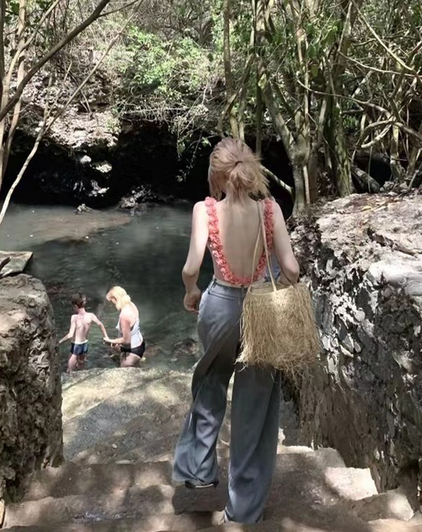 Bikini 1 mảnh có rất nhiều thiết kế xinh xắn, item hở lưng với họa tiết viền hoa là 1 điển hình. Các nàng có thể mix em nó cùng quần jeans ống rộng, không chỉ tôn dáng mà còn giúp diện mạo "chất hơn nước cất", vừa phong cách vừa xinh yêu.