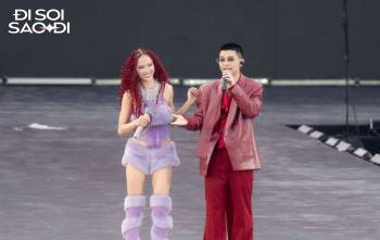 Dù diện váy hồng chóe, thiết kế xếp tầng điệu đà nhưng Bảo Anh lại cho thấy sự "cao tay" trong cách phối đồ sành sỏi với boots da cao cổ cá tính.