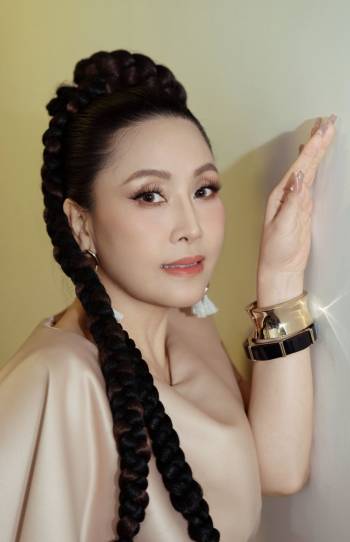Việc lựa chọn kiểu tóc búi lơi cũng cho thấy sự tinh tế của Đỗ Hà, giúp cô tôn lên phần cổ thanh thoát cùng đường nét nhẹ nhàng, trang nhã. Layout makeup tông hồng ton sur ton càng tô điểm cho visual nàng hậu thêm bùng nổ.