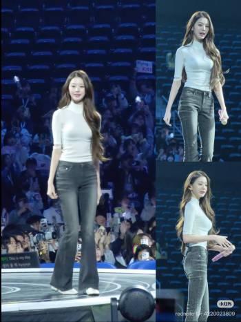 Phong cách của Hoàng Thùy Linh khá thoải mái, năng động. Mix áo sơ mi cùng chân váy sặc sỡ của Dsquared2, giọng ca sinh năm 1988 gia tăng chiều cao đáng kể. |