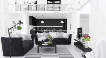 Phòng khách với hai tông màu đen-trắng ấn tượng