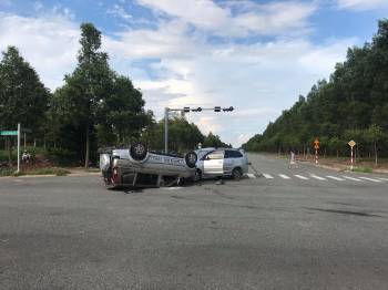 Hai ô tô chở nhiều trẻ nhỏ tông nhau giữa ngã tư rồi lật ngửa, ít nhất 7 người bị thương
