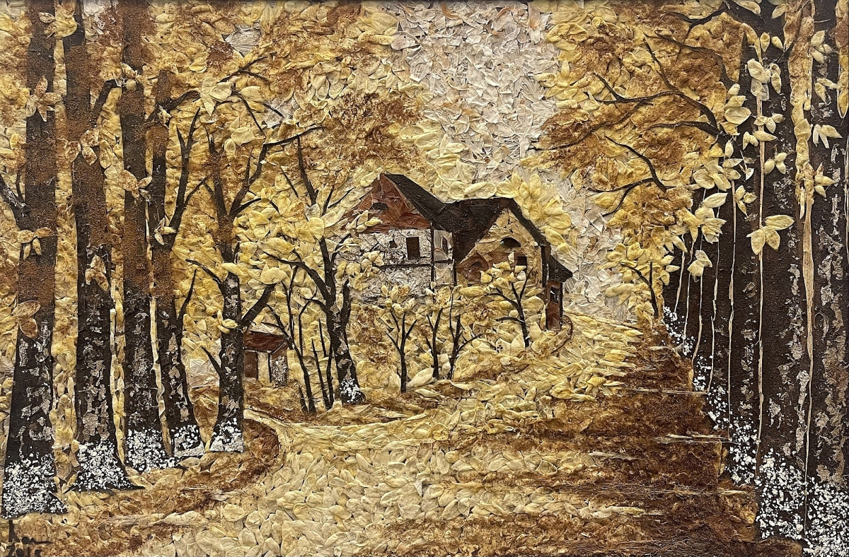 Tranh phong cảnh Việt làm từ lá, hoa khô